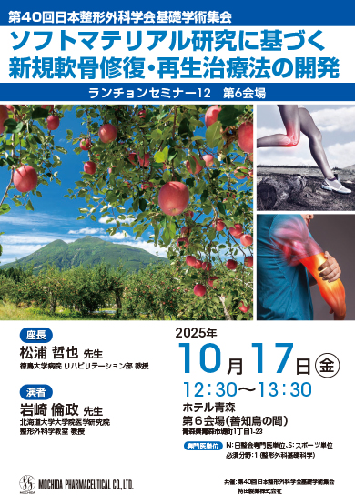 新規軟骨修復・再生治療法の開発現地開催整形外科領域第40回日本整形外科学会基礎学術集会 ランチョンセミナー12